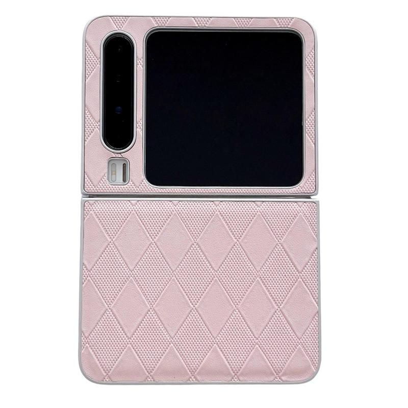For Huawei Pura X Pearlescent Paint Diamond Shaped Checkered Leather Phone Case(Pink)