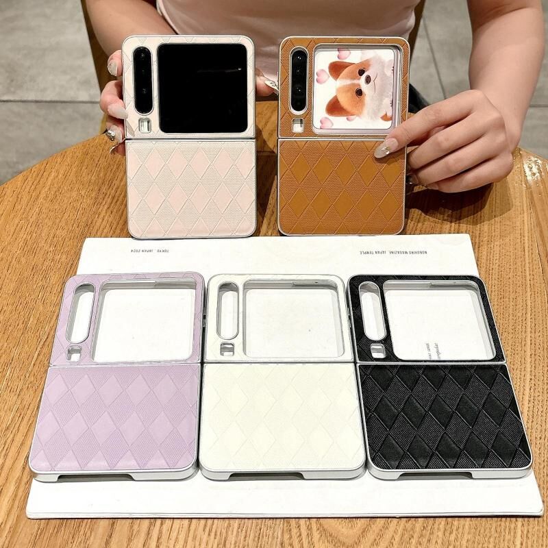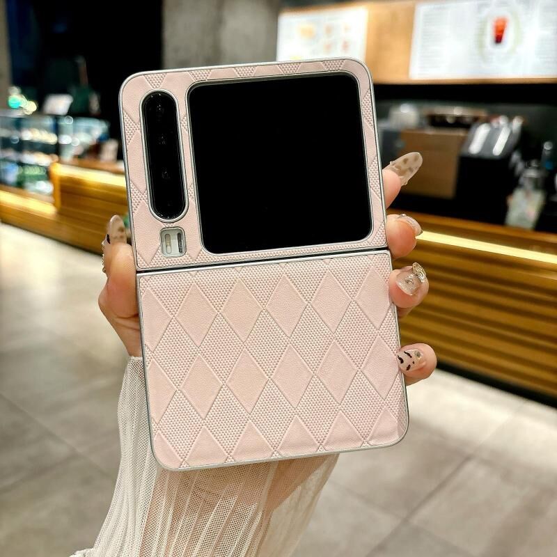 Θήκη τηλεφώνου Huawei Pura X με μαργαριταρένια βαφή, διαμαντένιο σχήμα και καρό δέρμα (Καφέ)