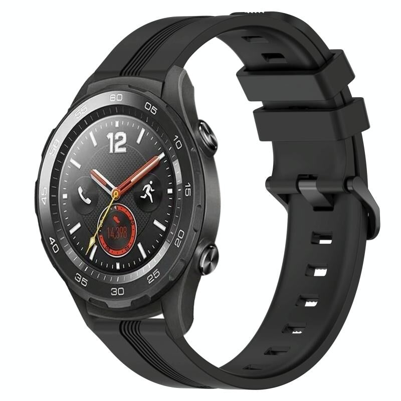 Για το Huawei Watch 2 20mm Concave Striped Slicone Watch Band (Μαύρο)