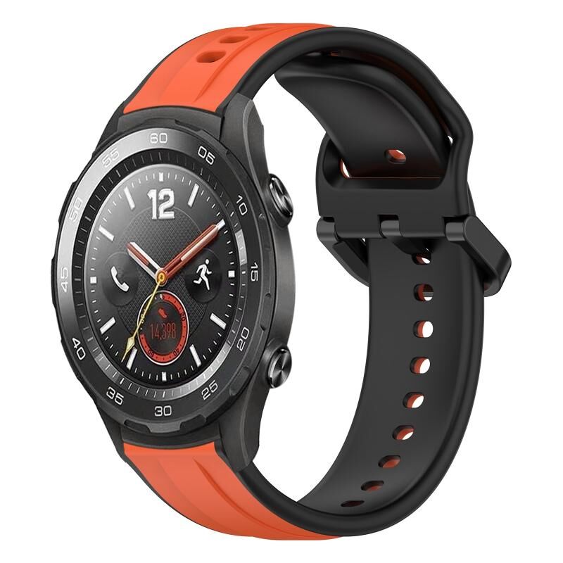 Για το Huawei Watch 2 20 χιλιοστά κυρτό βρόχο δύο χρωμάτων σιλικόνης ρολόι μπάντα ρολογιού (πορτοκαλί + μαύρο)