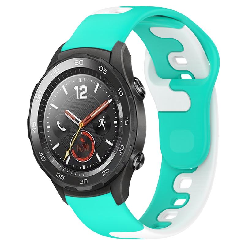 For Huawei Watch 2 20mm Double Color Silicone Watch Band(Cyan+White)