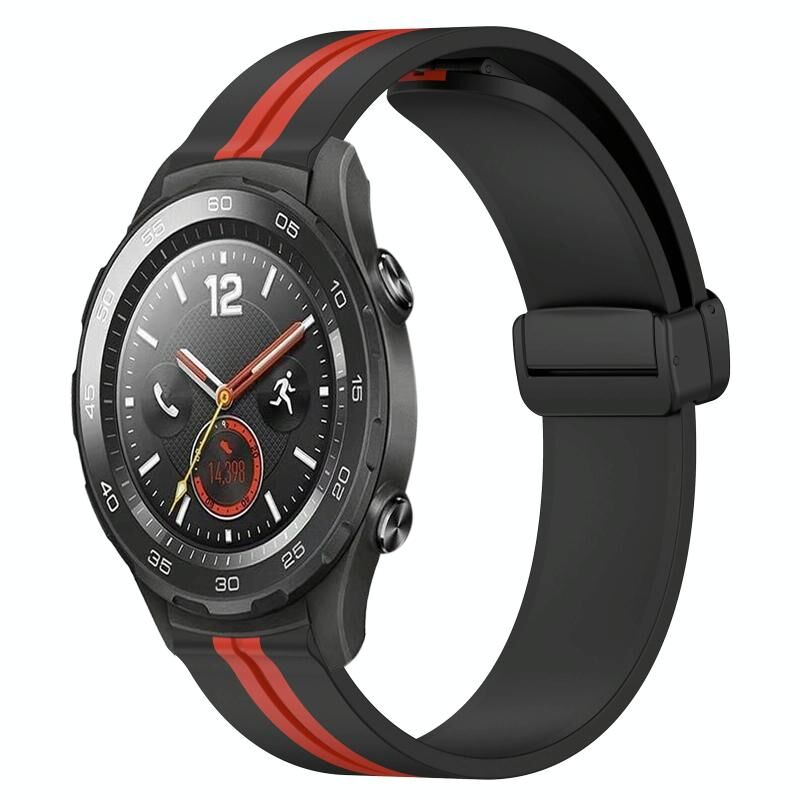 Για το Huawei Watch 2 20 χιλιοστά πτυσσόμενο μαγνητικό κούμπωμα σιλικόνης ρολόι μπάντα ρολογιού (μαύρο + κόκκινο)
