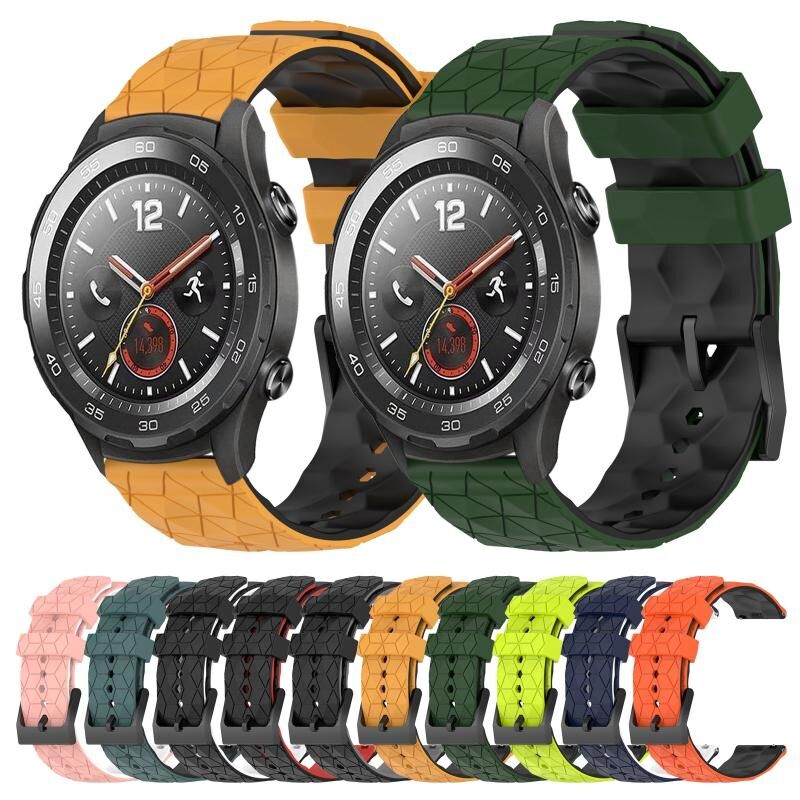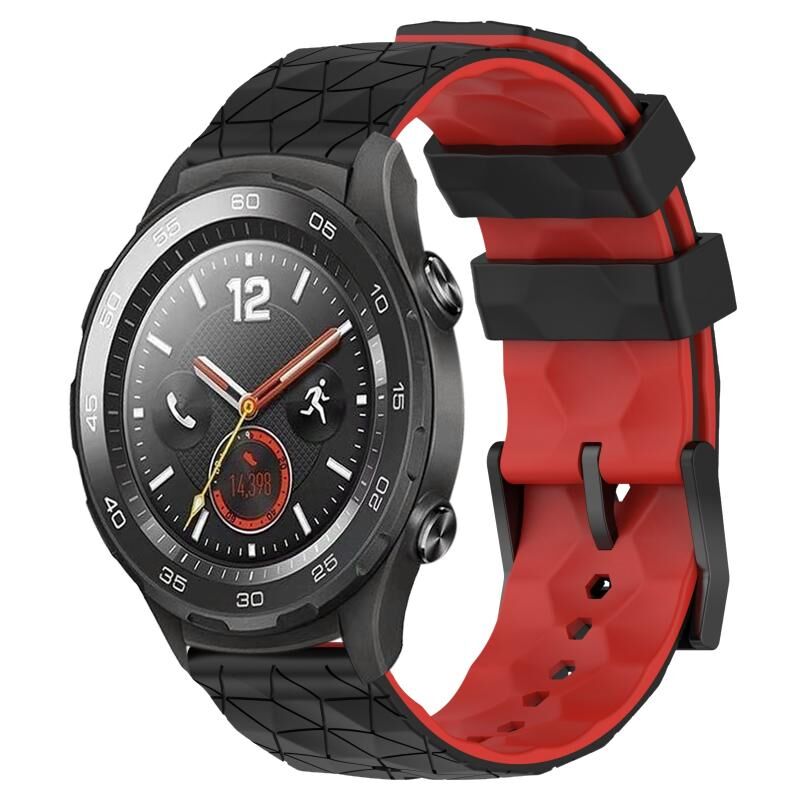 Για το Huawei Watch 2 20 χιλιοστά ποδοσφαιρικό μοτίβο δύο χρωμάτων σιλικόνης ρολόι μπάντα ρολογιού (μαύρο + κόκκινο)