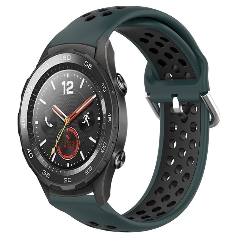 Για το Huawei Watch 2 20 χιλιοστά διάτρητη αναπνεύσιμη αθλητική ζώνη ρολογιού σιλικόνης (πράσινο + μαύρο)