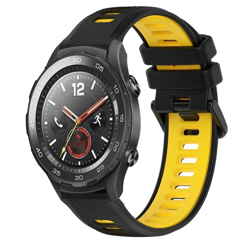 Για το Huawei Watch 2 20 χιλιοστά αθλητική ζώνη ρολογιού σιλικόνης δύο χρωμάτων (μαύρο + κίτρινο)