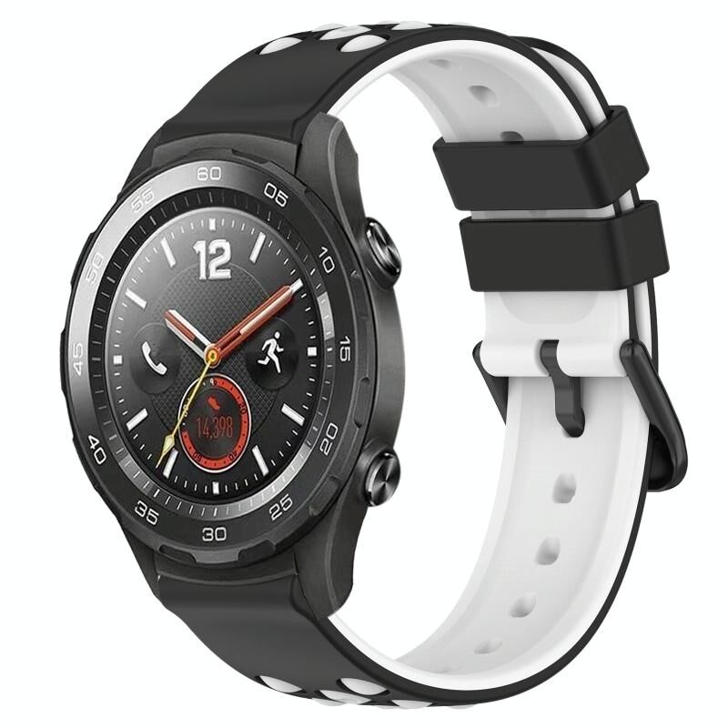 Για το Huawei Watch 2 20 χιλιοστά δύο χρωμάτων πορώδη ζώνη ρολογιού σιλικόνης (μαύρο + λευκό)