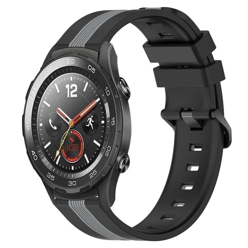 Για το Huawei Watch 2 20mm κάθετη ζώνη ρολογιού σιλικόνης δύο χρωμάτων (μαύρο + γκρι)