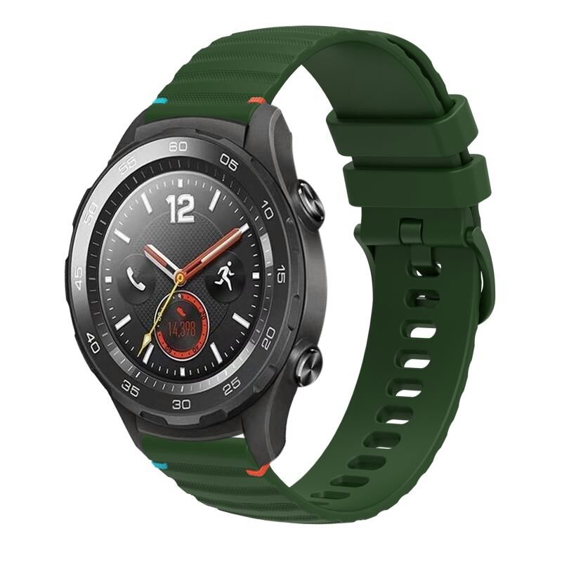 For Huawei Watch 2 Wavy Dotted Stitched 20mm Silicone Watch Band(Army Green)