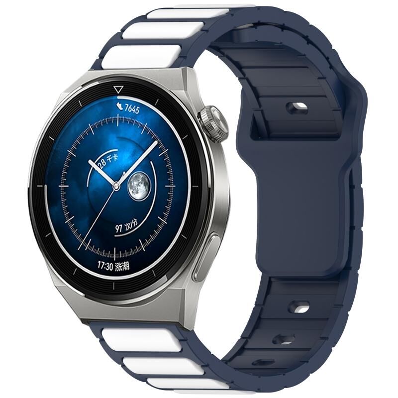 Για το Huawei Watch 20 χιλιοστά δύο χρωμάτων I-Shaped σιλικόνης ρολόι μπάντα ρολογιών (Midnight Blue + Λευκό)