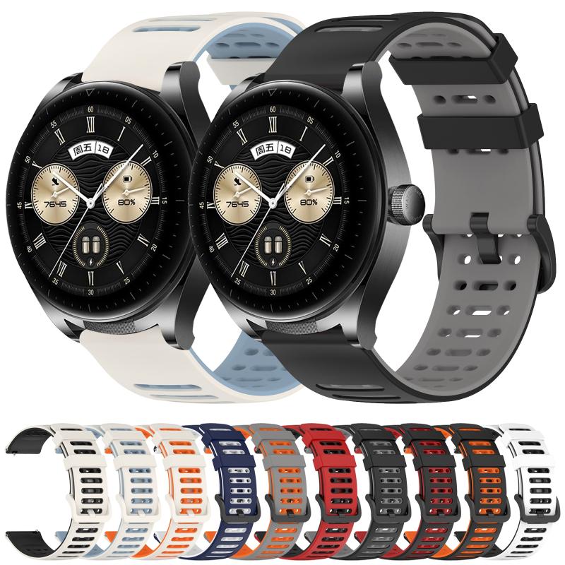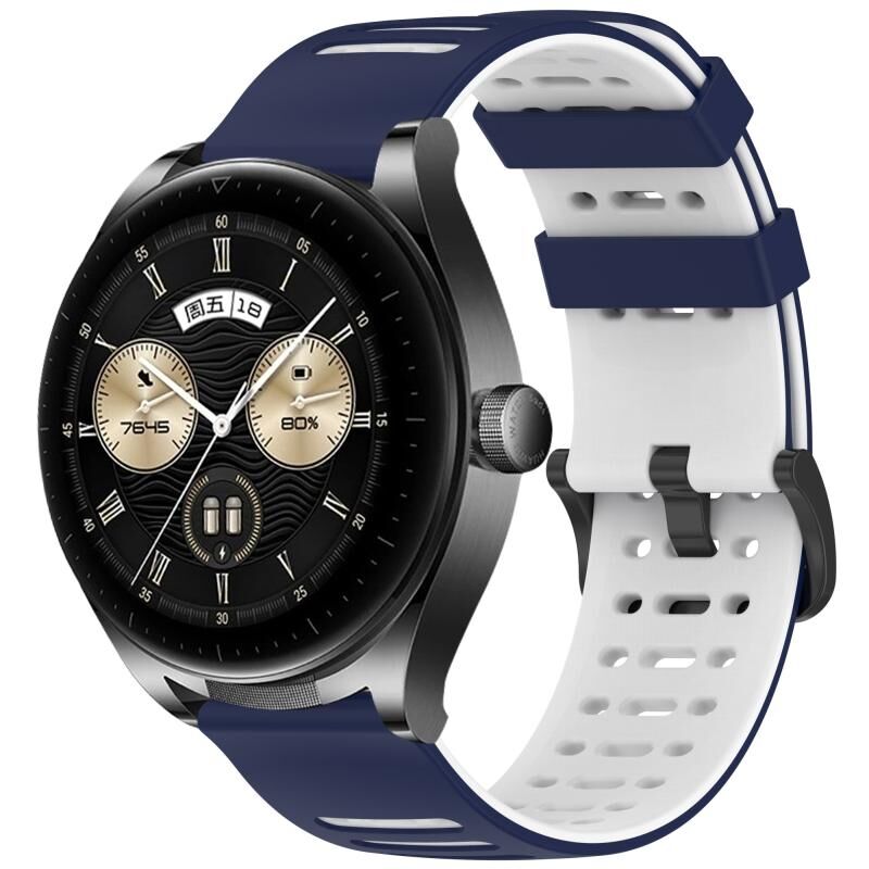 For Huawei Watch 22mm Hollow Three Rows Hole Two Color Silicone Watch Band(Midnight Blue+White)