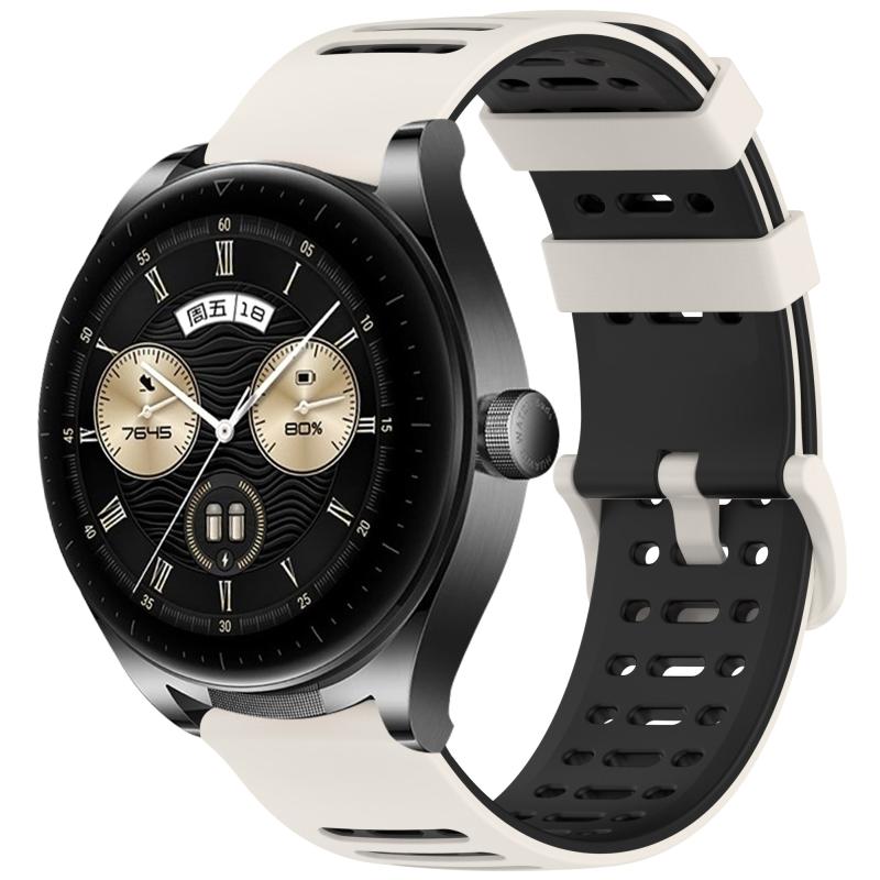 For Huawei Watch 22mm Hollow Three Rows Hole Two Color Silicone Watch Band(Starlight+Black)
