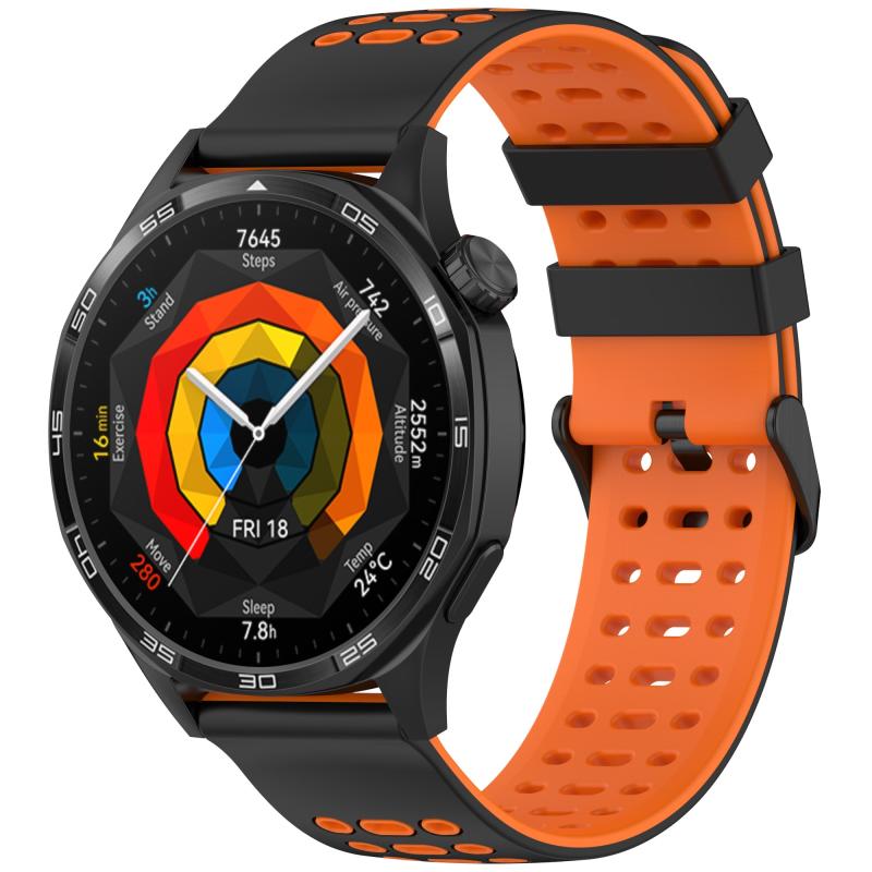 For Huawei Watch 22mm Three Rows Hole Two Color Silicone Watch Band(Black+Orange)