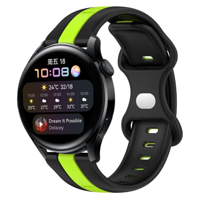 Για το Huawei Watch 3 20mm Butterfly Buckle δύο χρωμάτων σιλικόνης ρολόι μπάντα ρολογιού (μαύρο + πράσινο)