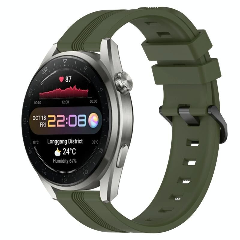 Για το Huawei Watch 3 22mm Concave Striped Slicone Watch Band (Στρατιωτικό πράσινο)