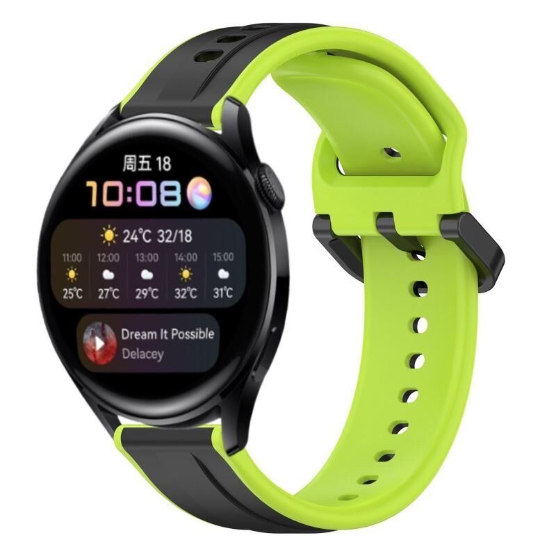 Για το Huawei Watch 3 22mm κυρτό βρόχο σιλικόνης δύο χρωμάτων (μαύρο + lime)