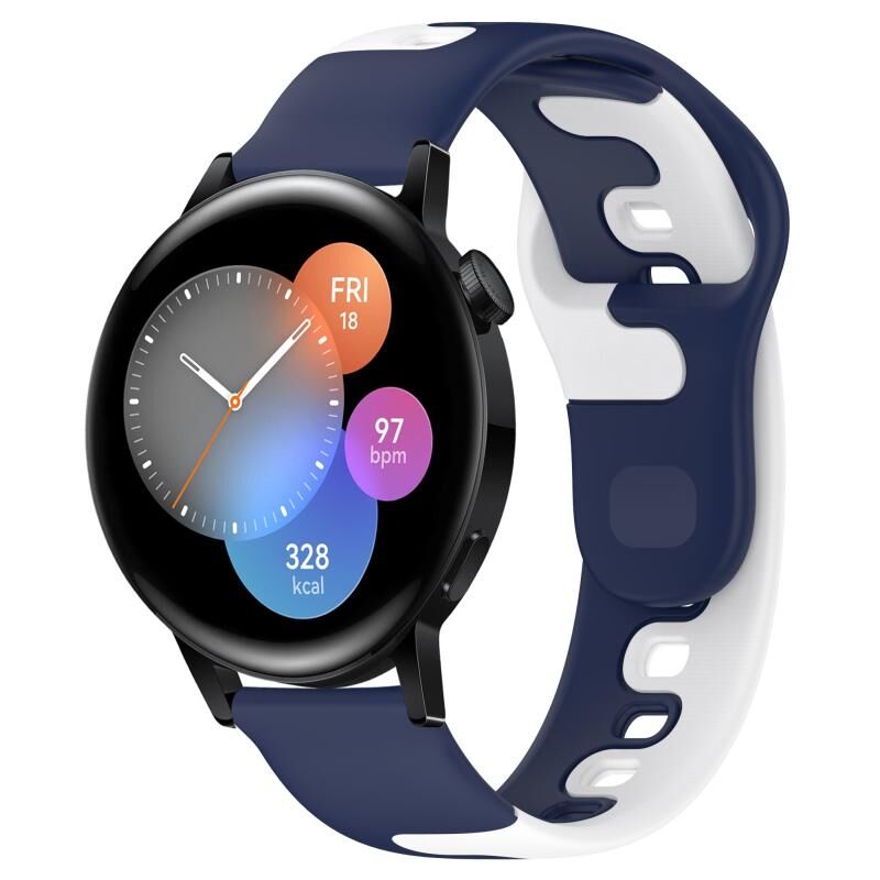 Για το Huawei Watch 3 22 χιλιοστά διπλό χρώμα σιλικόνης ρολόι μπάντα ρολογιών (μπλε + λευκό)