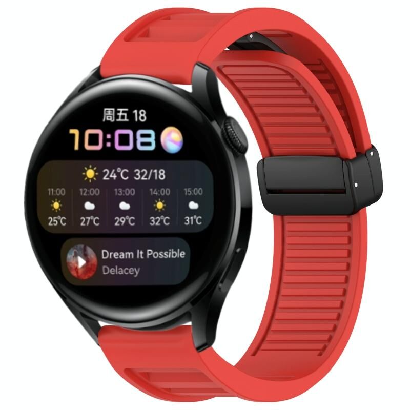 Για το Huawei Watch 3 22mm πτυσσόμενο μαγνητικό λουράκι σιλικόνης (κόκκινο)