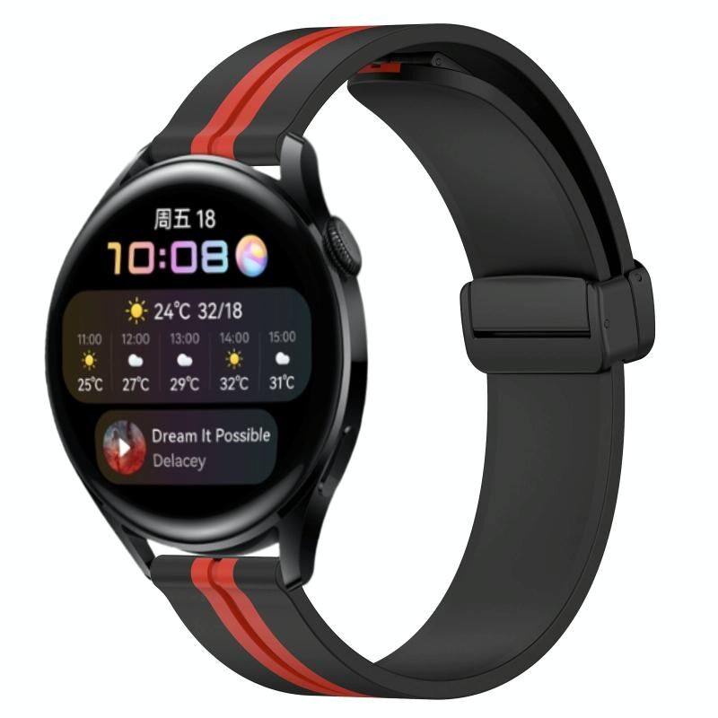 Για Huawei Watch 3 22mm Πτυσσόμενο μαγνητικό κούμπωμα σιλικόνης ρολόι μπάντα ρολογιού (μαύρο + κόκκινο)