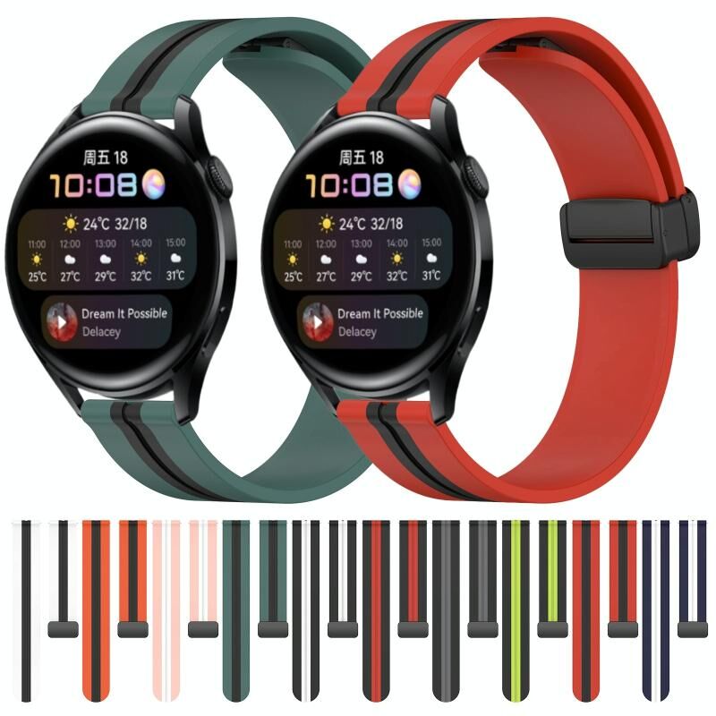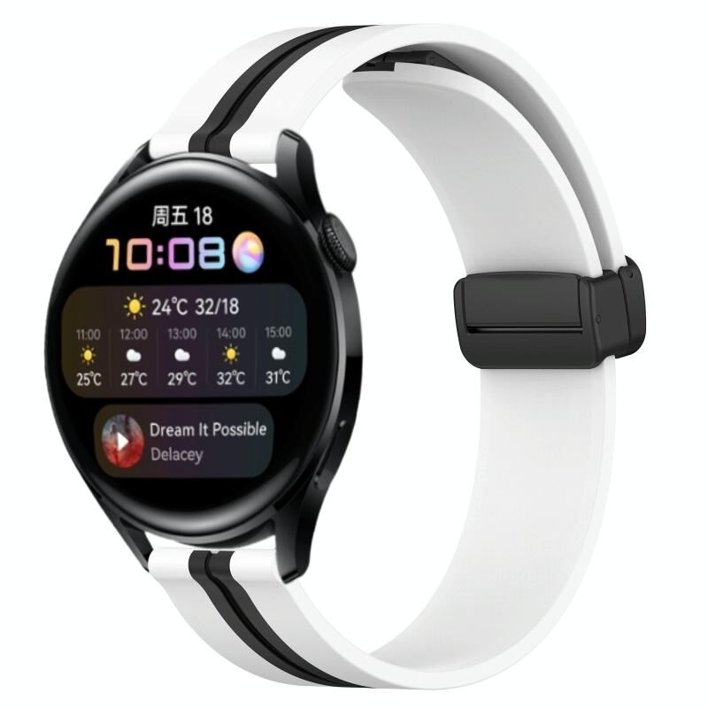 Για το Huawei Watch 3 22mm Πτυσσόμενο μαγνητικό κούμπωμα σιλικόνης (Λευκό+Μαύρο)