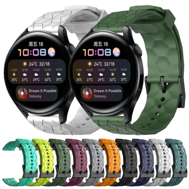 Για το Huawei Watch 3 22 χιλιοστά ποδοσφαίρου μοτίβο στερεό χρώμα σιλικόνης ρολόι μπάντα ρολογιών (κίτρινο)
