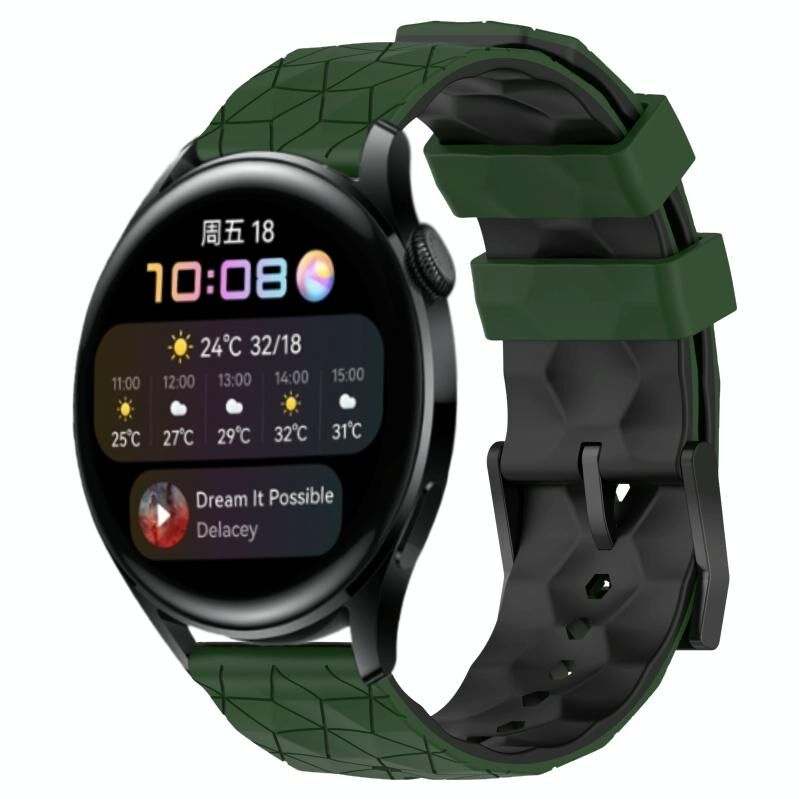 Για το Huawei Watch 3 22 χιλιοστά ποδοσφαιρικό μοτίβο δύο χρωμάτων σιλικόνης ρολόι μπάντα ρολογιού (πράσινο στρατού + μαύρο)