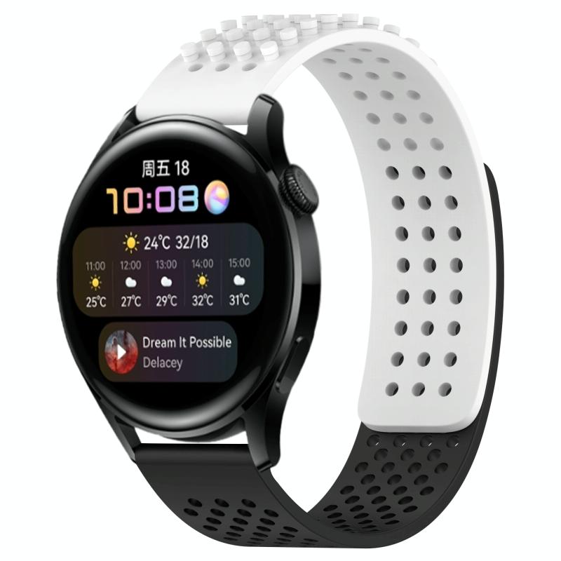 For Huawei Watch 3 22mm Holes Breathable 3D Dots Silicone Watch Band(White+Black)