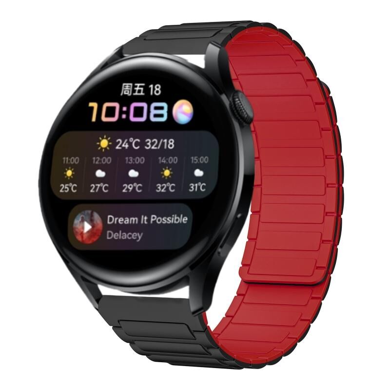 Για το Huawei Watch 3 22mm I-shaped μαγνητική ζώνη ρολογιού σιλικόνης (μαύρο+κόκκινο)