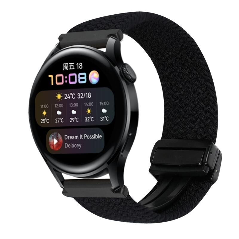 Για το Huawei Watch 3 22mm μαγνητική πόρπη Braided Watch Band (μεταλλικό μαύρο)