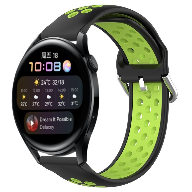 Για το Huawei Watch 3 22mm διάτρητη αναπνεύσιμη αθλητική ζώνη ρολογιού σιλικόνης (μαύρο + ασβέστη)