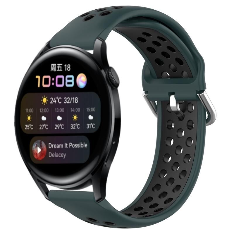 Για το Huawei Watch 3 22mm διάτρητη αναπνεύσιμη αθλητική ζώνη ρολογιού σιλικόνης (πράσινο + μαύρο)