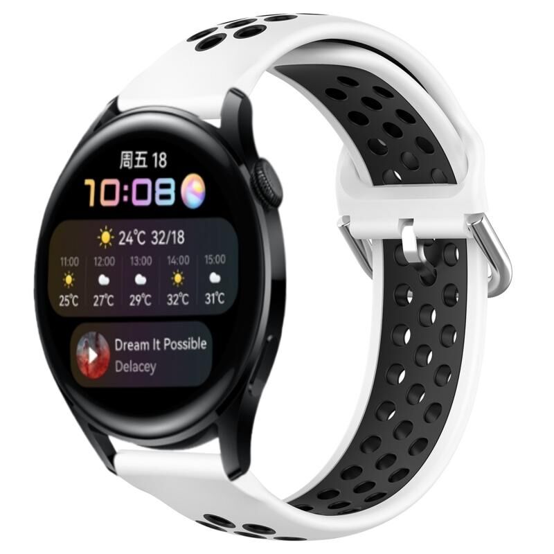 Για το Huawei Watch 3 22mm διάτρητη αναπνεύσιμη αθλητική ζώνη ρολογιού σιλικόνης (λευκό + μαύρο)