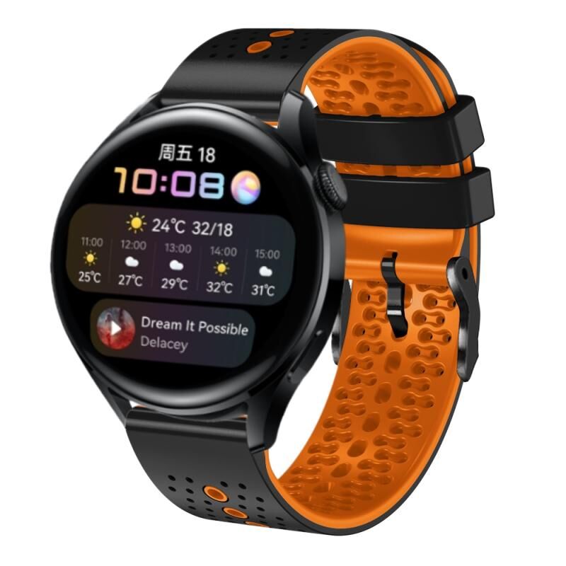Για το Huawei Watch 3 22mm διάτρητη ζώνη ρολογιού σιλικόνης δύο χρωμάτων (μαύρο + πορτοκαλί)
