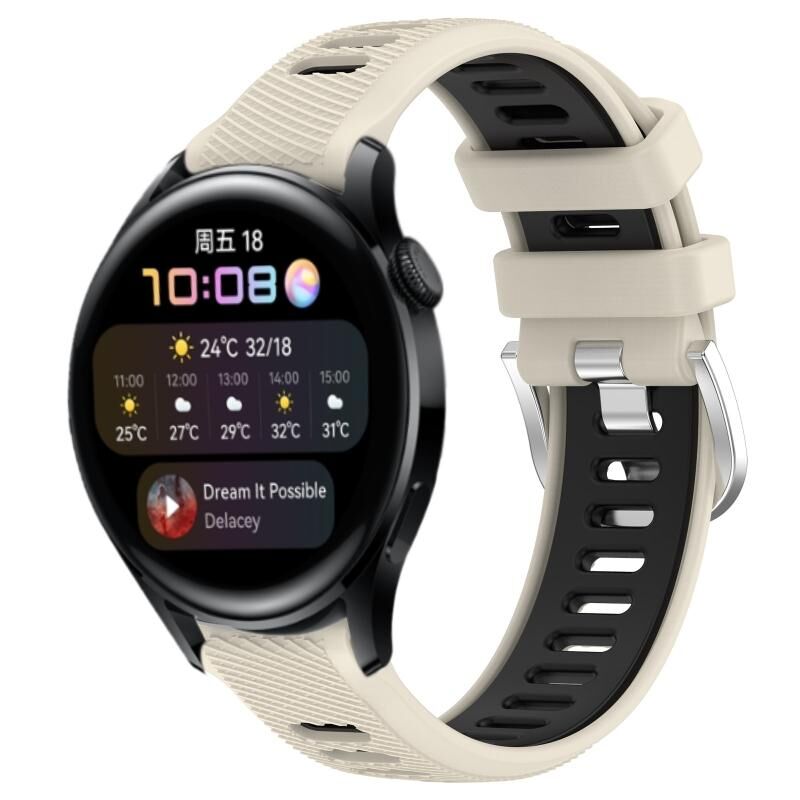 Για το Huawei Watch 3 22mm Αθλητισμός δύο χρωμάτων χάλυβα πόρπη σιλικόνης ρολόι μπάντα ρολογιών (Starlight + Μαύρο)