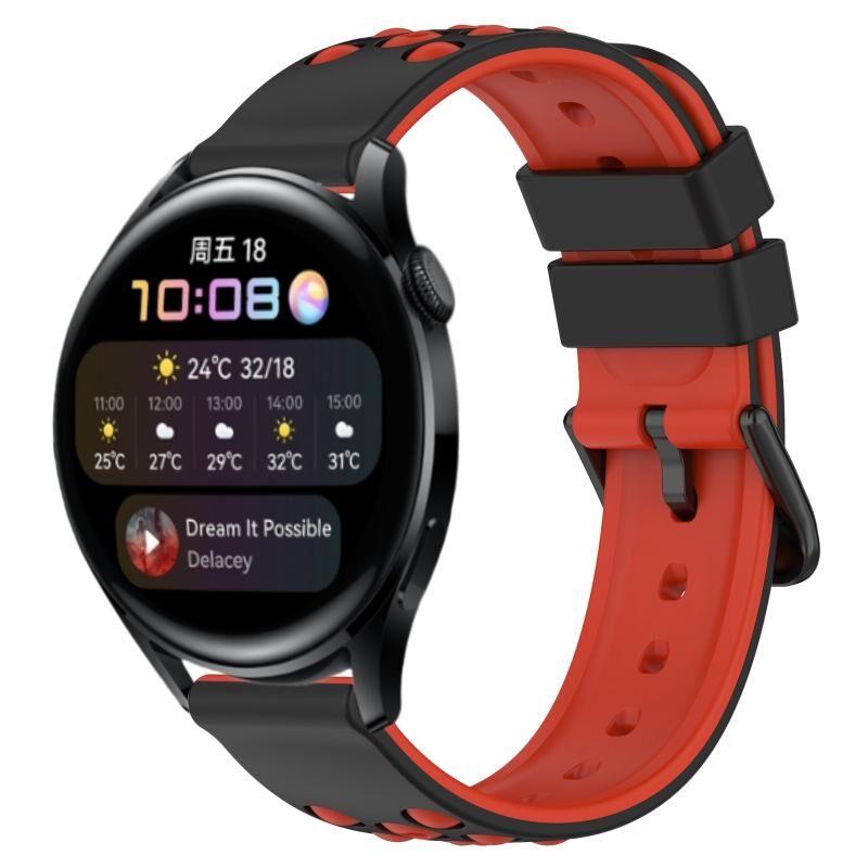Για το Huawei Watch 3 22 χιλιοστά δύο χρωμάτων πορώδη ζώνη ρολογιού σιλικόνης (μαύρο + κόκκινο)