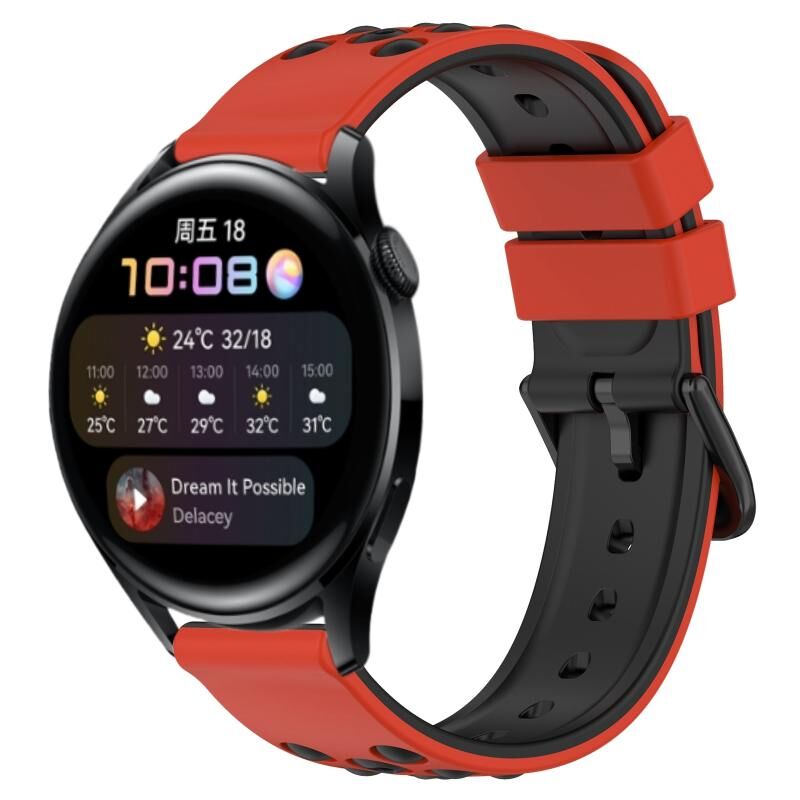 Για το Huawei Watch 3 22 χιλιοστά δύο χρωμάτων πορώδη ζώνη ρολογιού σιλικόνης (κόκκινο + μαύρο)