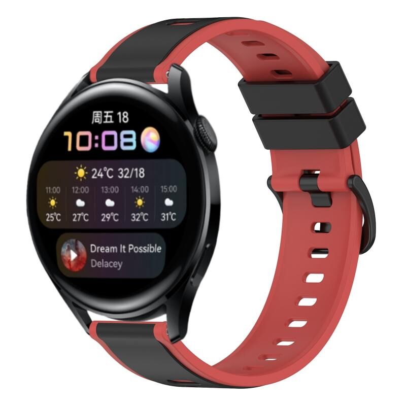 Για το Huawei Watch 3 22 χιλιοστά δύο χρωμάτων σιλικόνης ρολόι μπάντα ρολογιών (μαύρο + κόκκινο)