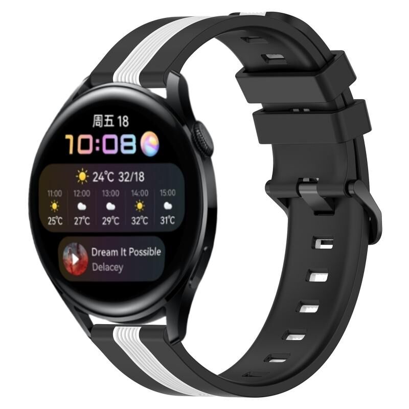 Για το Huawei Watch 3 22mm Κάθετη ζώνη ρολογιού σιλικόνης δύο χρωμάτων (μαύρο + λευκό)