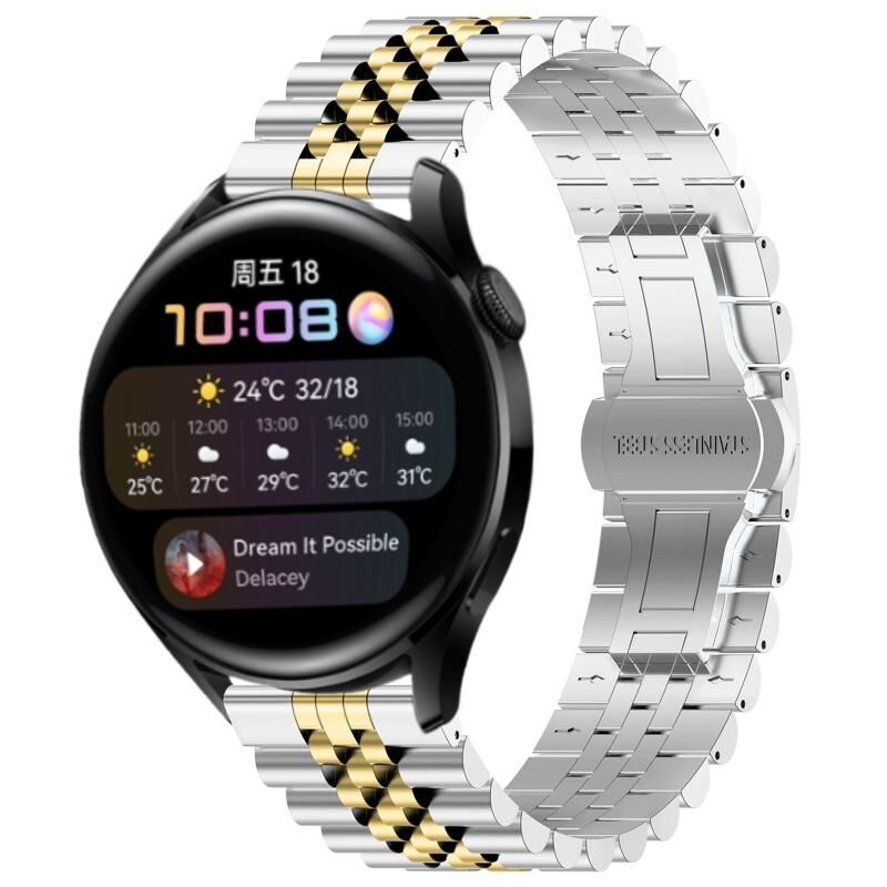 Για Huawei Watch 3 / 3 Pro Five Bull Half Round Stainless Steel Watch Band + Εργαλείο αφαίρεσης ιμάντα (Ασημί + Χρυσό)