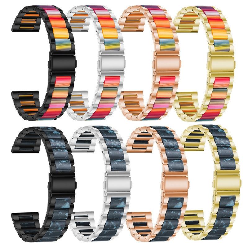 Για Huawei Watch 3/3 Pro/Garmin Venu 2 22mm Universal Τρίκροκο Ανοξείδωτο Ατσάλι + Ρητίνη Λουράκι Ρολογιού (Ασημί+Πέρλα Λευκό)