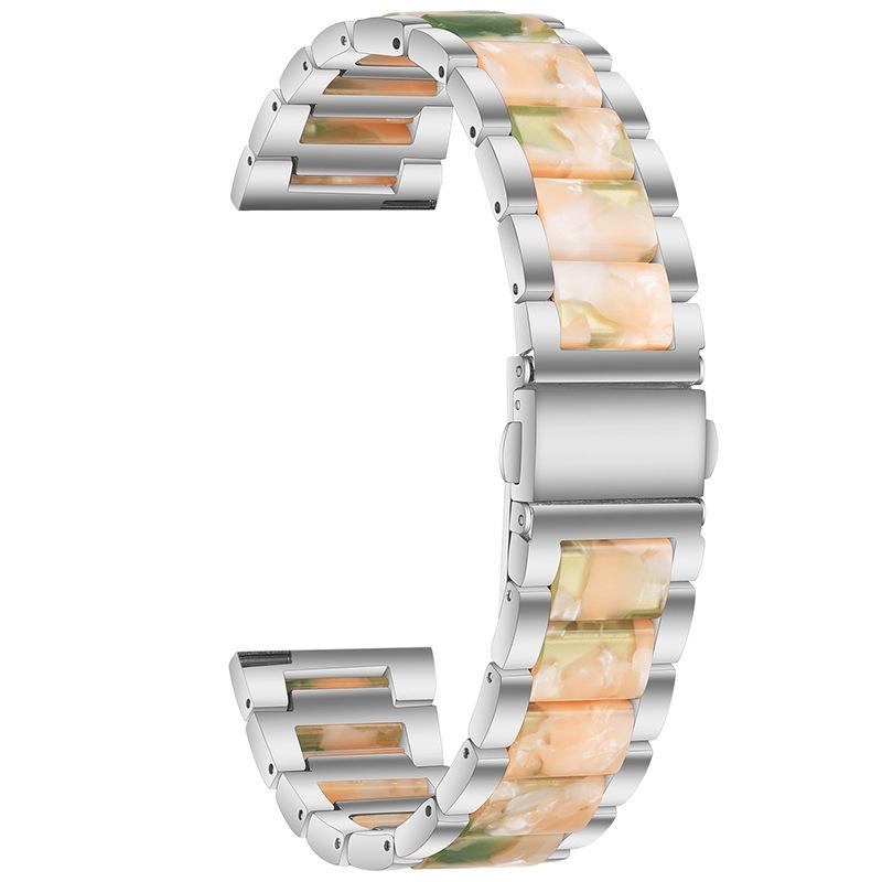 Για Huawei Watch 3/3 Pro/Garmin Venu 2 22mm Universal Τρίκροκο Ανοξείδωτο Ατσάλι + Ρητίνη Λουράκι Ρολογιού (Ασημί+Πέρλα Λευκό)