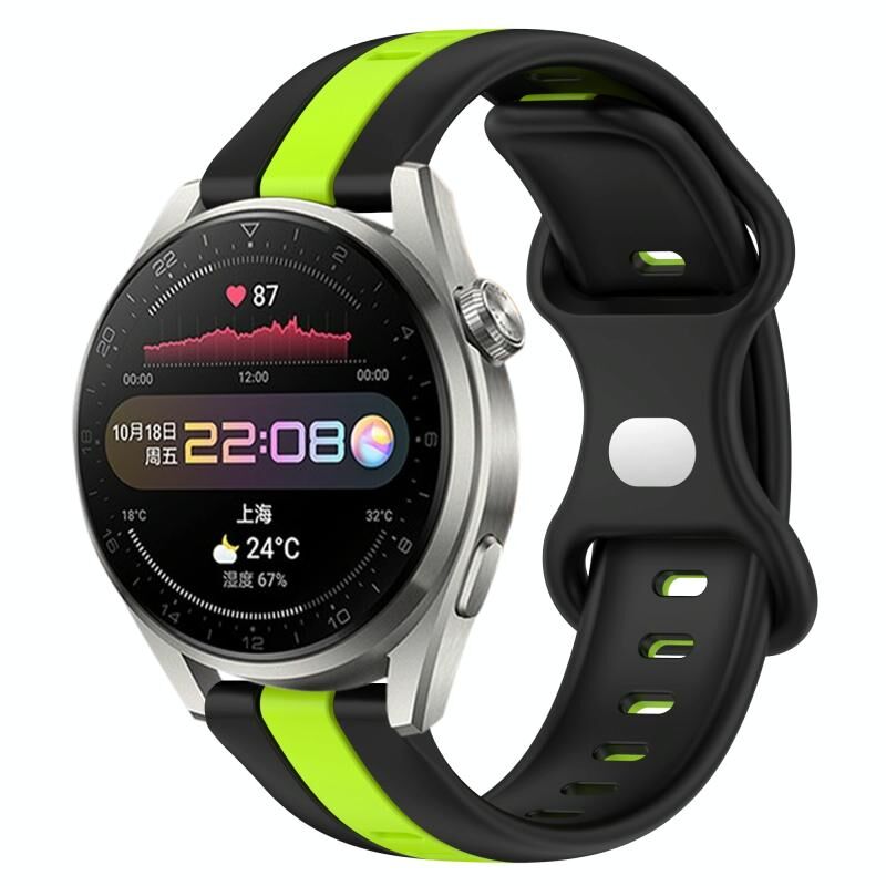Για το Huawei Watch 3 Pro 20mm Butterfly Buckle Two-Color Silicone Watch Band (μαύρο + πράσινο)