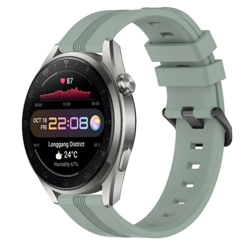 Για το Huawei Watch 3 Pro 22mm Concave Striped Slicone Watch Band (γκριζοπράσινο)