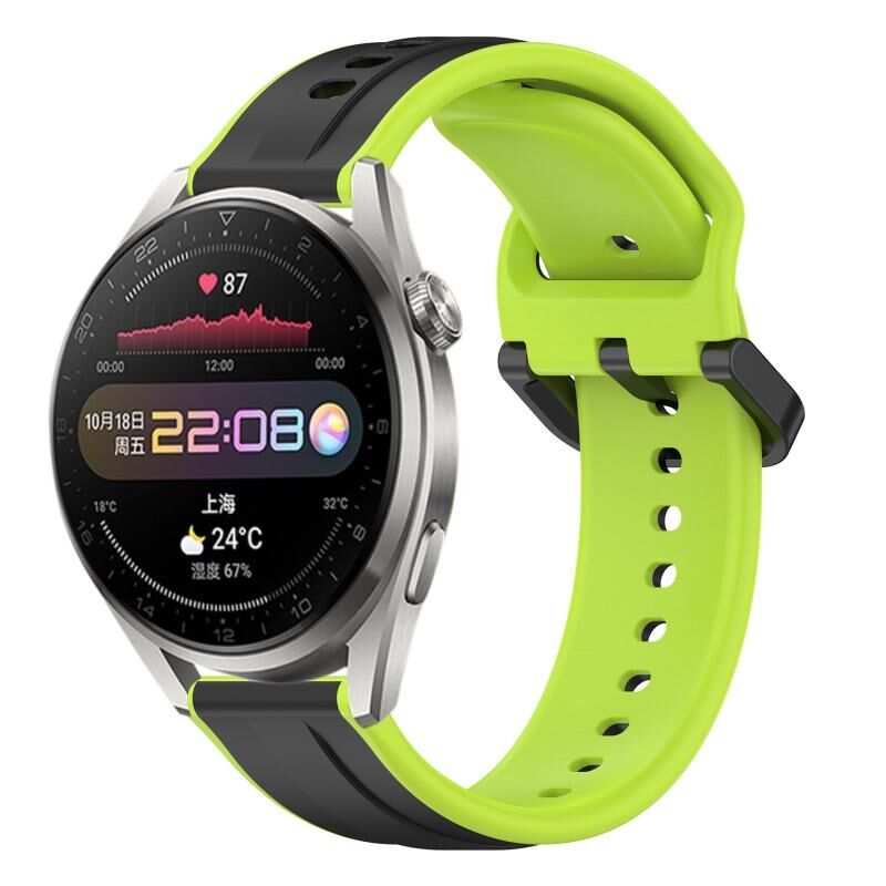 Για το Huawei Watch 3 Pro 22mm Convex Loop Two-Color Silicone Watch Band (Μαύρο+Lime)