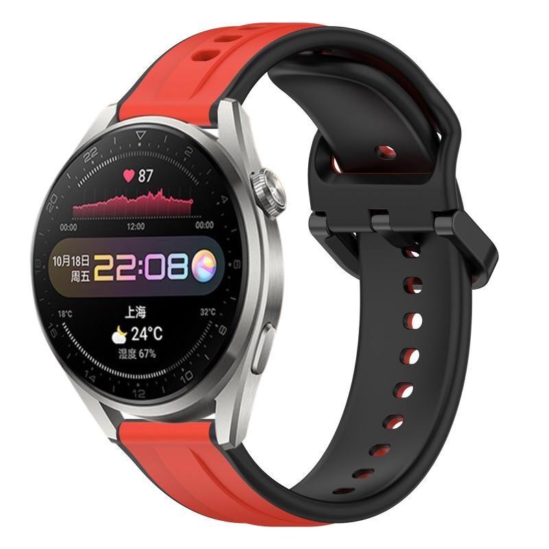 Για το Huawei Watch 3 Pro 22mm Convex Loop Two-Color Silicone Watch Band (Κόκκινο+Μαύρο)