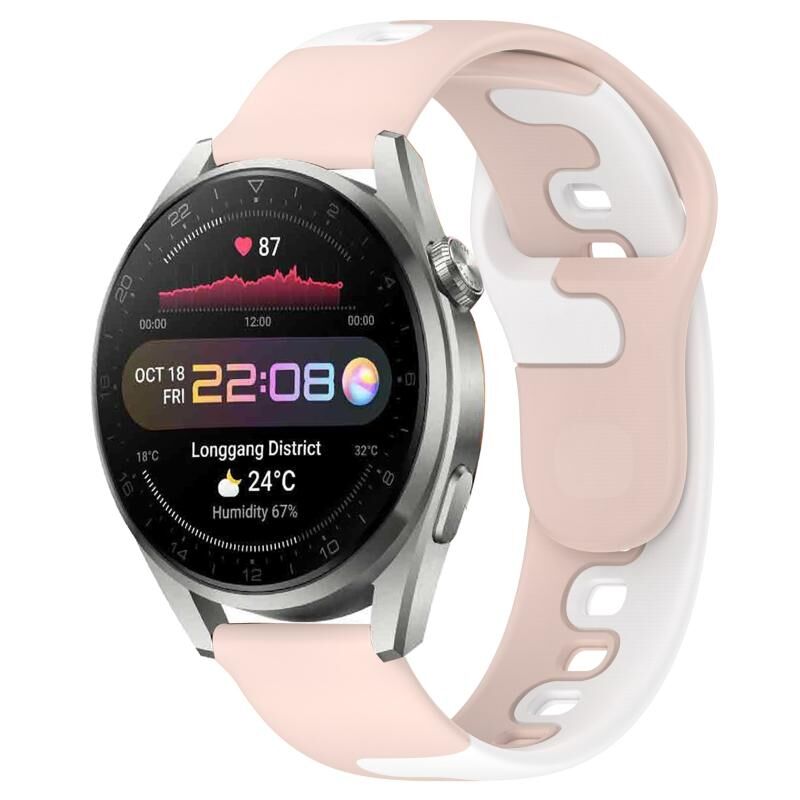 Για το Huawei Watch 3 Pro 22 χιλιοστά διπλό χρώμα σιλικόνης ρολόι μπάντα ρολογιού (ροζ + λευκό)