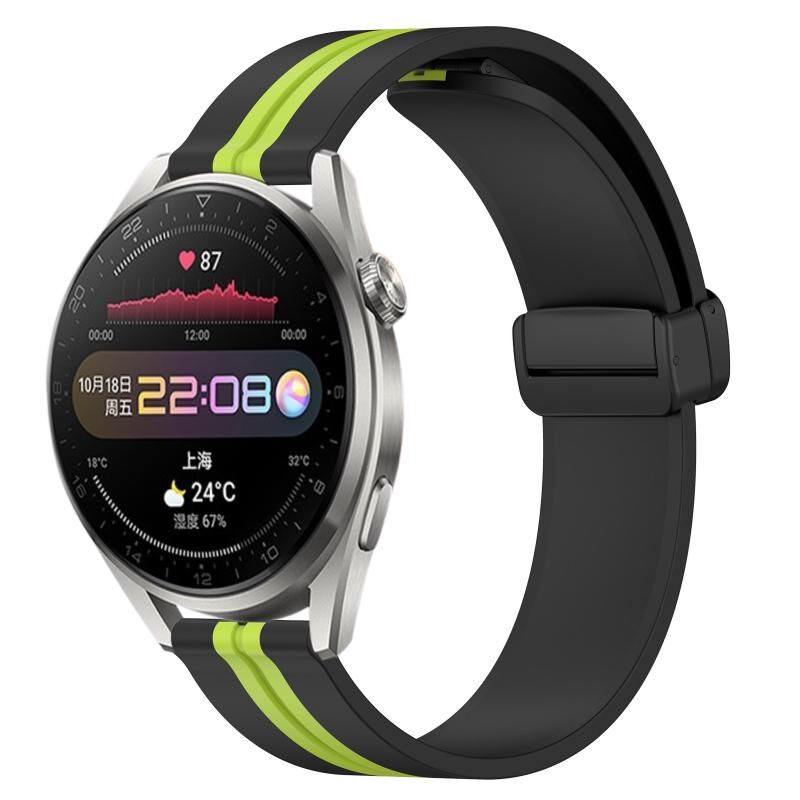 Για το Huawei Watch 3 Pro 22mm Πτυσσόμενο μαγνητικό κούμπωμα ζώνη ρολογιού σιλικόνης (Μαύρο+Lime Green)
