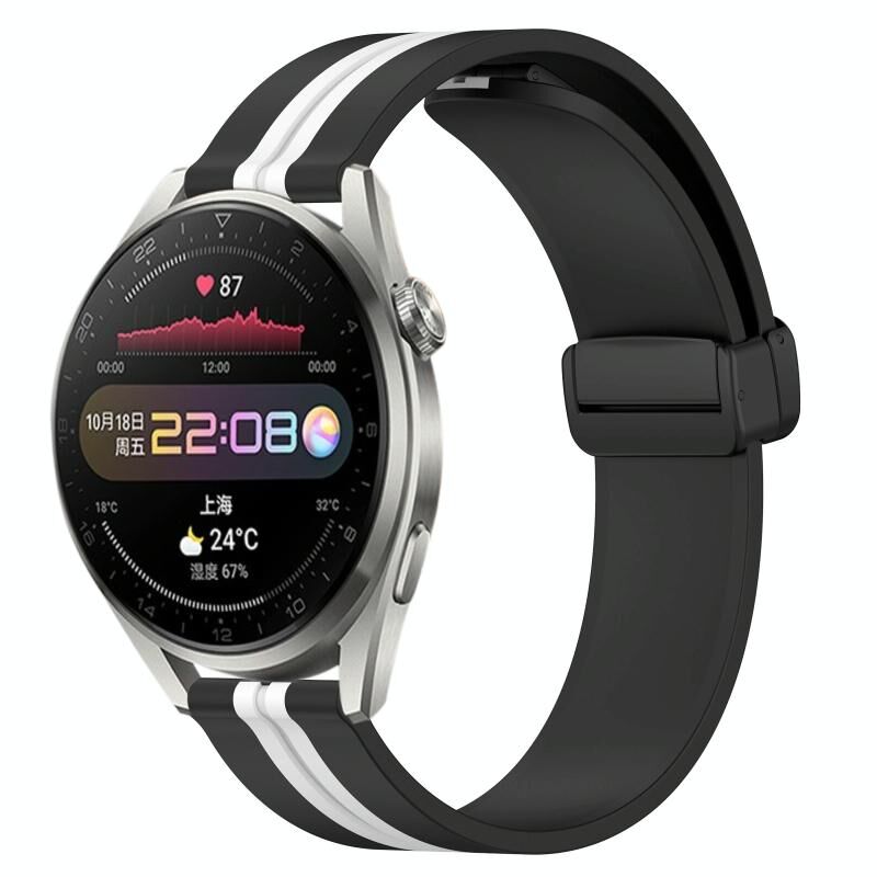 Για το Huawei Watch 3 Pro 22mm Πτυσσόμενο μαγνητικό κούμπωμα ζώνη ρολογιού σιλικόνης (μαύρο+λευκό)
