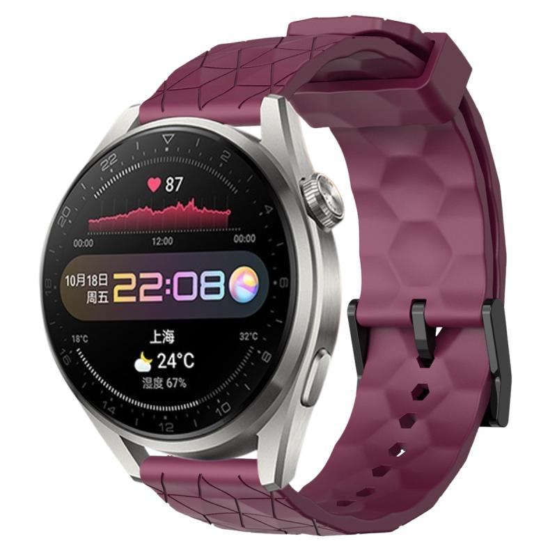 For Huawei Watch 3 Pro 22mm Football Pattern Solid Color Silicone Watch Band(Wine Red)