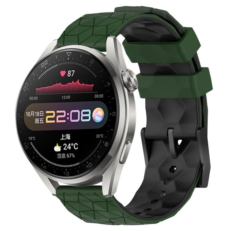 Για το Huawei Watch 3 Pro 22 χιλιοστά Ποδόσφαιρο μοτίβο δύο χρωμάτων σιλικόνης ρολόι μπάντα ρολογιού (Armygreen + μαύρο)