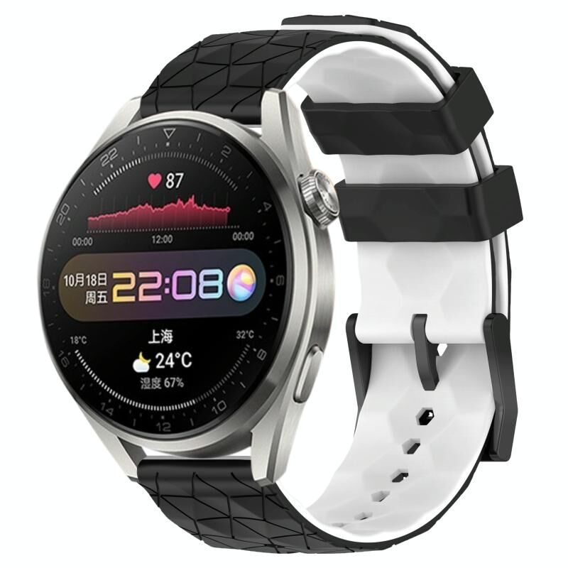Για το Huawei Watch 3 Pro 22 χιλιοστά Ποδόσφαιρο μοτίβο δύο χρωμάτων σιλικόνης ρολόι μπάντα ρολογιού (μαύρο + λευκό)